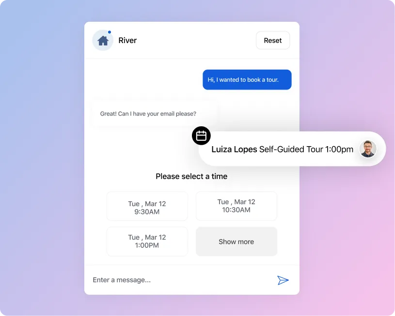 Self-Tour EnabledSelf-guided tours with bank-level securityGive your prospects the freedom to tour your property on their terms while freeing on staff time for retention.Book a Demo
